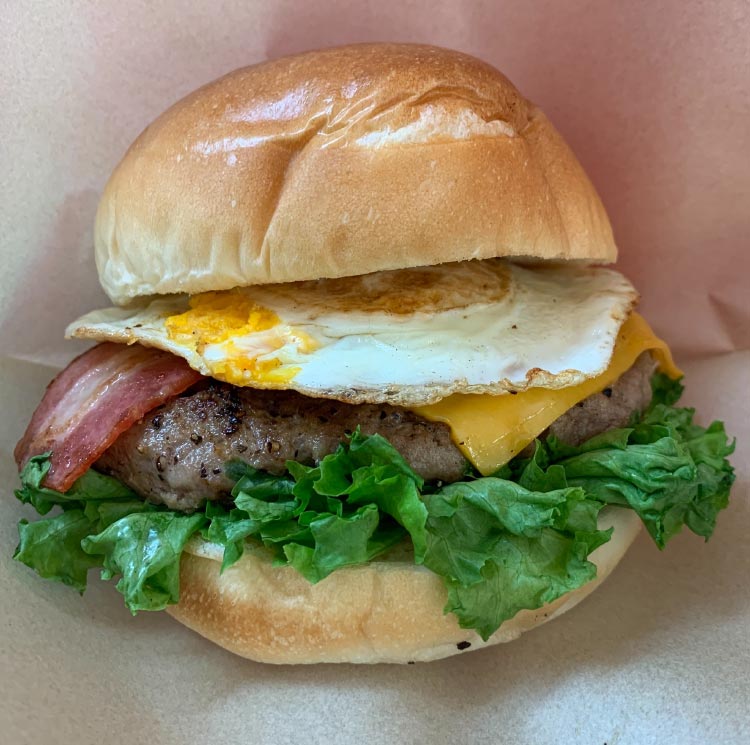 牛肉100%のジューシーパティにこだわりの具材をたくさん詰め込みました。ふわふわバンズとの相性抜群!栄養も満足も満点です。