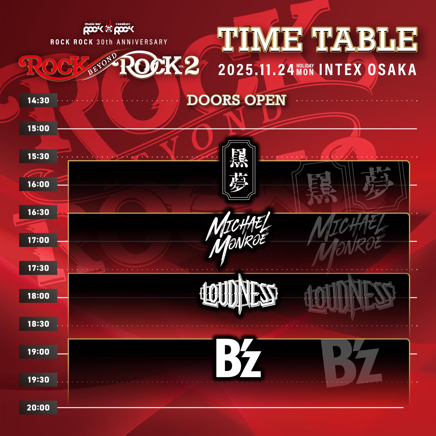 ●ROCK ROCK 30th ANNIVERSARY LIVE ROCK BEYOND ROCK VOL.2 は、長時間にわたる音楽イベントです。